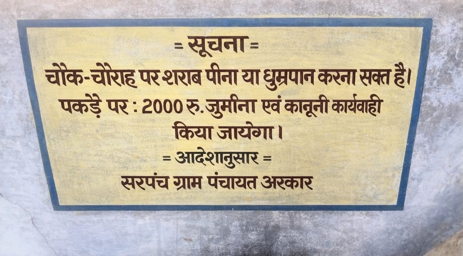 ग्राम पंचायत अरकार में नशे का साम्राज्य बोर्ड कड़ा, ज़मीन पर कानून लाचार
