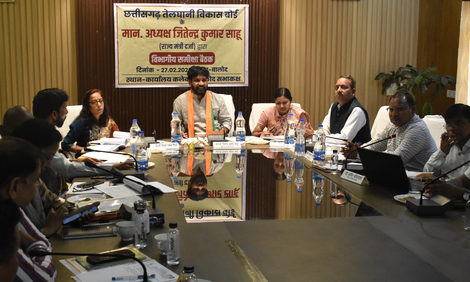 बालोद :- छत्तीसगढ़ के जिला बालोद में तेलघानी विकास बोर्ड के अध्यक्ष जितेन्द्र कुमार साहू ने संयुक्त जिला कार्यालय सभाकक्ष में अधिकारियों की व्यापक समीक्षा बैठक लेकर परंपरागत तेलघानी व्यवसाय से जुड़े लघु उद्यमियों और तिलहन उत्पादक किसानों के सामाजिक-आर्थिक उत्थान हेतु संचालित योजनाओं की गहन पड़ताल की। बैठक का मूल उद्देश्य पारंपरिक कौशल को आधुनिक बाजार से जोड़ते हुए ग्रामीण अर्थव्यवस्था को सशक्त बनाना और गुणवत्तापूर्ण खाद्य तेल की उपलब्धता सुनिश्चित करना रहा।अध्यक्ष ने स्पष्ट किया कि बेहतर स्वास्थ्य के लिए शुद्ध और पोषक तेल का सेवन अत्यावश्यक है। बोर्ड द्वारा विद्यालयों, छात्रावास-आश्रमों और आंगनबाड़ी केंद्रों तक उच्च गुणवत्ता वाला तेल उपलब्ध कराने की दिशा में ठोस पहल की जा रही है, जिससे बच्चों के पोषण स्तर में सुधार हो और स्थानीय उत्पादकों को स्थायी बाजार मिले।बैठक में जिला पंचायत अध्यक्ष तारणी पुष्पेन्द्र चंद्राकर, जिला पंचायत उपाध्यक्ष तोमन साहू, कलेक्टर दिव्या उमेश मिश्रा, संयुक्त कलेक्टर मधुहर्ष, डिप्टी कलेक्टर प्राची ठाकुर सहित जनप्रतिनिधि और विभागीय अधिकारी उपस्थित रहे।समीक्षा के दौरान पंचायत एवं ग्रामीण विकास, कृषि, उद्योग, आदिम जाति, शिक्षा, महिला एवं बाल विकास, कौशल विकास, उद्यानिकी, अत्यांवसायी वित्त एवं विकास निगम तथा खाद्य सुरक्षा विभाग की प्रगति का विभागवार विश्लेषण किया गया। कृषि विभाग से कुसुम, सरसों तथा अन्य तिलहन फसलों की उत्पादकता बढ़ाने के उपायों पर विस्तृत जानकारी ली गई। किसानों को गुणवत्तायुक्त बीज, उन्नत तकनीक और प्रोत्साहन योजनाओं से जोड़ने पर विशेष बल दिया गया, ताकि उत्पादन में निरंतर वृद्धि हो और आय दोगुनी करने का लक्ष्य व्यावहारिक रूप ले सके।