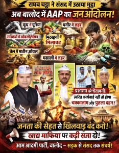 “ज़हर पर चुप क्यों सरकार?” – मिलावटी खाद्य माफिया के खिलाफ आम आदमी पार्टी का उग्र एलान, सड़क से संसद तक संग्राम