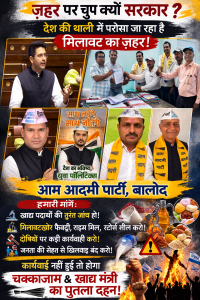 जिला मीडिया प्रभारी पंकज जैन ने प्रशासन को खुली चेतावनी देते हुए कहा कि यदि फैक्ट्रियों, राइस मिलों, बड़े स्टोर्स और मिठाई दुकानों में व्यापक जांच अभियान तुरंत शुरू नहीं हुआ, तो आम आदमी पार्टी सड़कों पर उतरेगी। “चक्काजाम होगा, जनआंदोलन होगा और जिम्मेदार मंत्री का पुतला दहन भी,” उन्होंने ऐलान किया।आम आदमी पार्टी ने स्पष्ट कर दिया है कि यह मुद्दा राजनीतिक नहीं, जनस्वास्थ्य का है। पार्टी का कहना है कि जब तक मिलावटखोरों को सख्त सजा नहीं मिलती और खाद्य जांच व्यवस्था पारदर्शी नहीं बनती, तब तक संघर्ष जारी रहेगा। अब सवाल सीधा है—क्या सरकार जनता की थाली को सुरक्षित बनाएगी या मुनाफाखोरों के साथ खड़ी रहेगी?